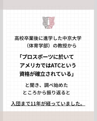 「プロスポーツに於いてはアメリカではATCという資格が確立されている」と聞いたときから、この道が始まったと思います。そこから調べ始めて、入団するまで11年が経っていました。