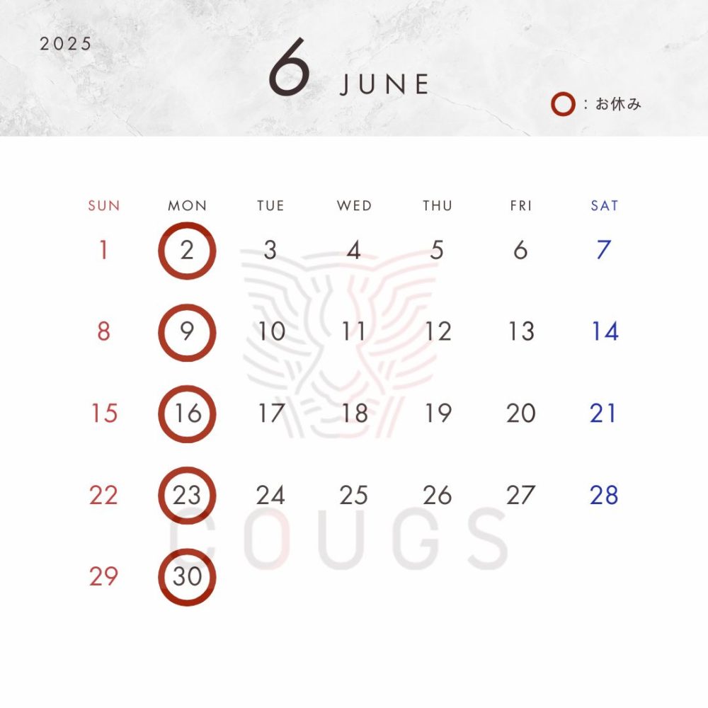 6月の定休日は